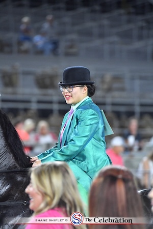 SHELBYVILLE, Tenn. – The first Thursday night of The Celebration is always full of promise as the Two-Year-Old Mare spilt and the Owner-Amateur Two-Year-Old split showcase the newest generation of great walking horses. The show got underway at precisely 7PM, with Mark Farrar welcoming White Diamond Dollar and Vicki Self into the show ring. Andy Keffer of First Church of the Nazarene gave the invocation, and James Wells of Franklin did a beautiful rendition of the national anthem. Sunny, mild weather brought with it the excitement for 14 competitive classes.
